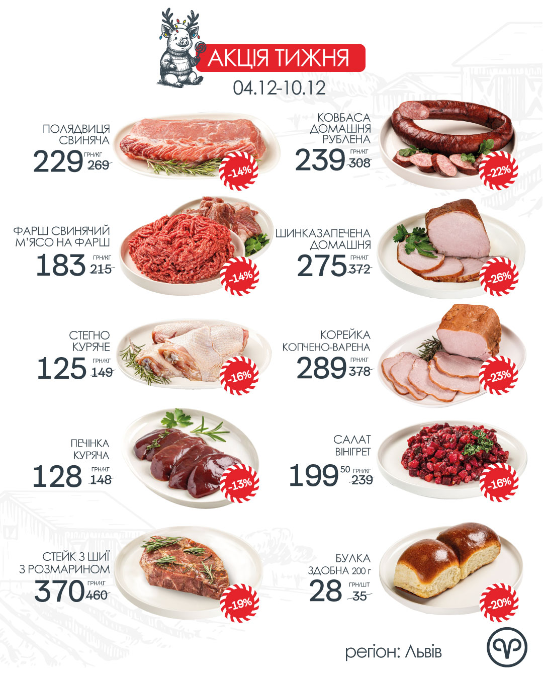 Склад: м'ясна сировина (свинина знежилована напівжирна 60,0%, свинина знежилована жирна 40,0%), смако-ароматична добавка (приправи натуральні, підсилювач смаку, аромати, комплексна суміш (регулятор кислотності, сіль, спеції і екстракти спецій (лимон, гірчиця)), композиція ароматів спецій.