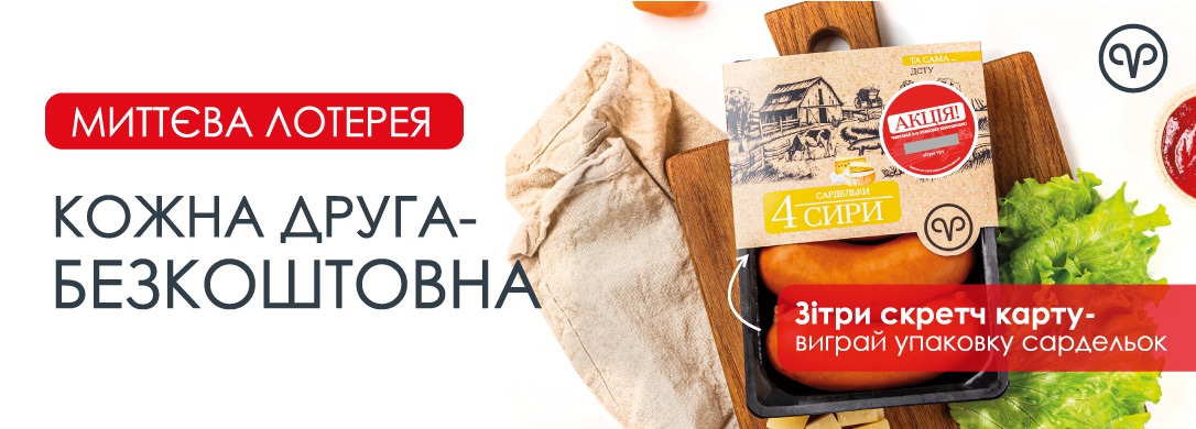 - Обирайте Сардельки “4 сири” зі спеціальною акційною скретч-карткою на упаковці.