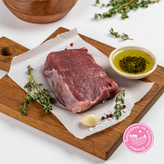Склад: напівфабрикат м’ясний (м’якоть без кістки з тазостегнової частини туші) 100%.