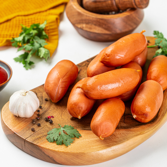 Склад: м'ясна сировина (свинина знежилована напівжирна – 60%, яловичина знежилована вищого ґатунку – 35%), яєчний порошок – 3%, молоко сухе знежирене – 2%, сіль нітритна, сахар, перець духмяний, мускатний горіх.
