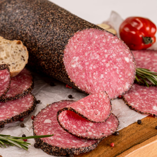 Ковбаса сирокопчена "Салямі Золотиста" половинка